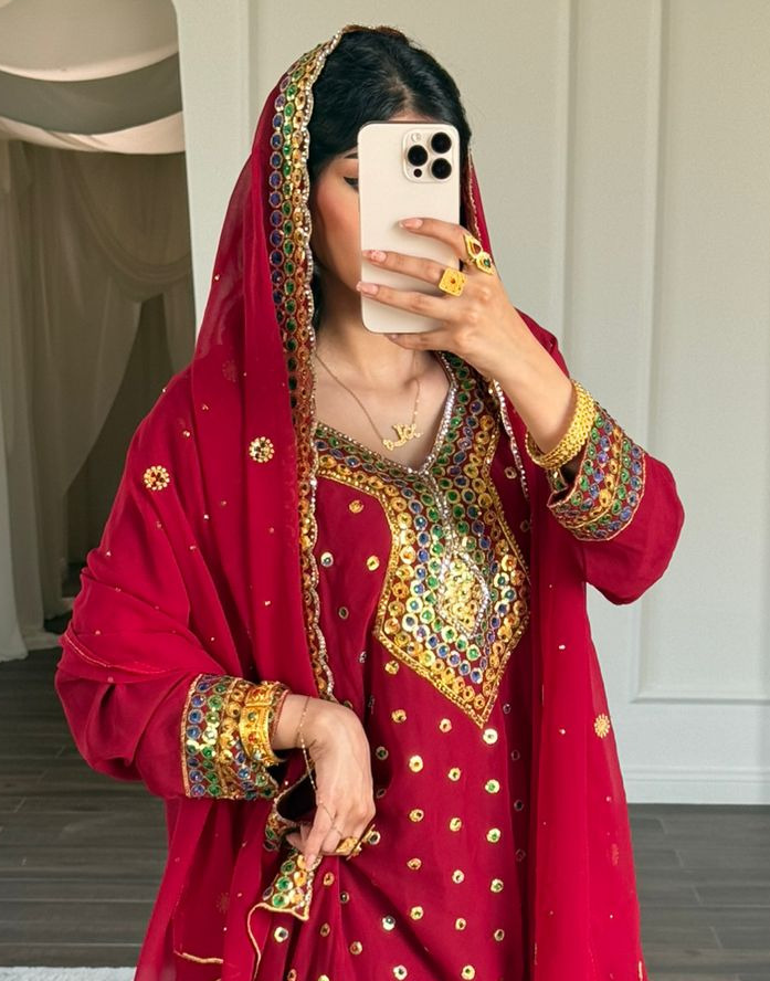 لبسه قماش شيفون عليها شغل شك فولك مع شيله
