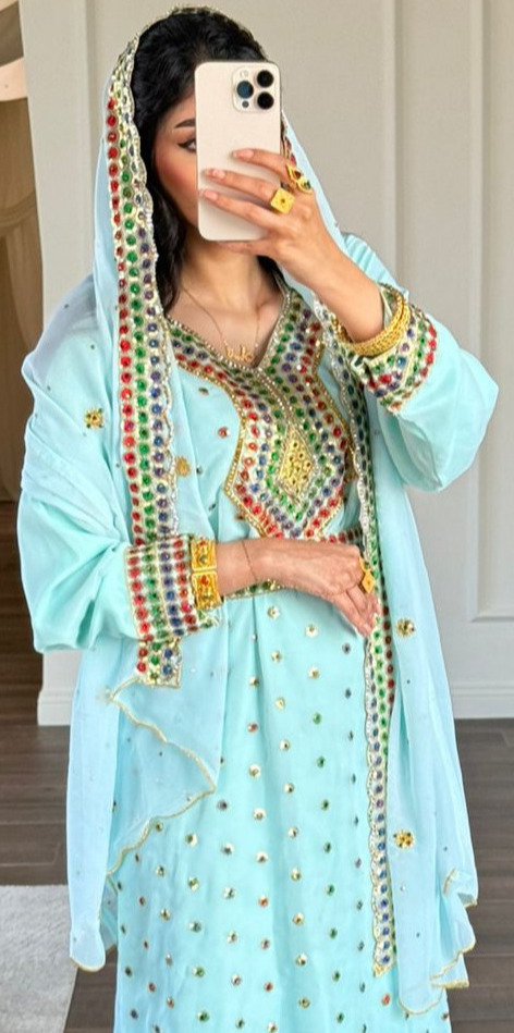 لبسه قماش شيفون عليها شغل شك فولك مع شيله